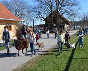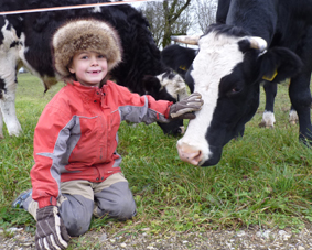 Einmal hat uns auch Kälbchen Fritz begleitet. Denkbar sind jedoch alle möglichen Arten von Tieren: