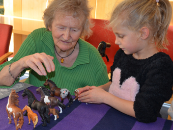 Streicheln, Beobachten, Putzen, Kuscheln, Führen und geführt werden, Reiter- und Geschicklichkeitsspiele hoch zu Ross,... u.v.m