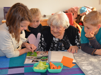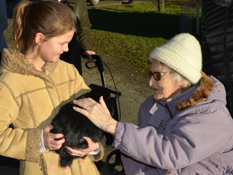 tiergestützte Förderung und Pädagogik hatte sie die Möglichkeit in einem Leutkircher Seniorenheim ein Projekt mit Kindern, Senioren