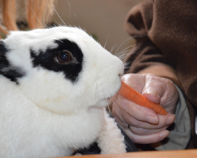 wenn das Tier Stresssignale oder ähnliches sendet. Die Kaninchen und Meerschweinchen dürfen nicht hochgehoben werden.