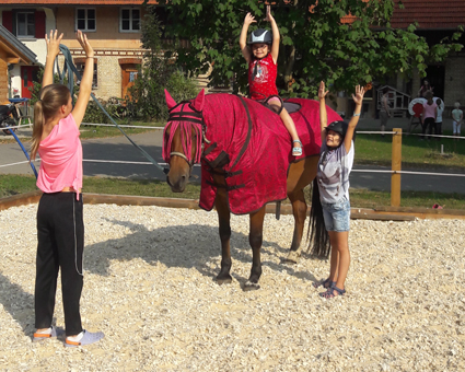 -   Wir legen Wert auf Abwechslung was die Themen des Unterrichts betrifft. Dieser soll für die Kinder und Pferd in erster Linie Freunde bereiten.