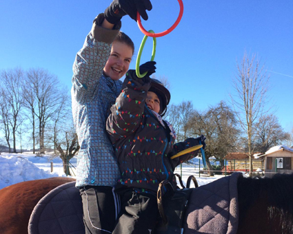 Bei uns kommt es nicht darauf an, wie lange ein Kind während einer Einheit auf dem Pferd sitzt, sondern wir achten darauf, was es bei den