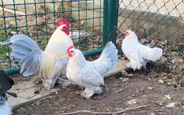 Unsere Dreiergruppe an federfüßigen porzellanfarbenen Zwergzwerghühner heißen Franz, Sissi und Nene
