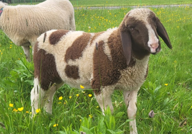 Milka (links) - die Hübsche (geb. 01/2024) und Mikado - das Ü-Ei (geb. 02/2025) - beides Bergscheckenschafe.