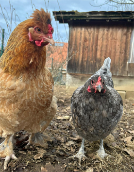 Unsere zwei größten Hühner sind zwei Lachshühner