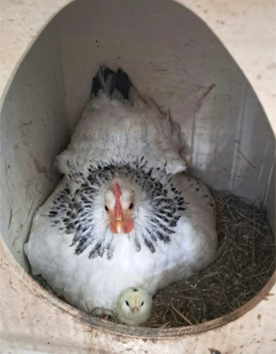 Schneeweißen (mit momentan 6 Küken) und Schneewittchen (rechts)