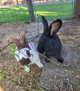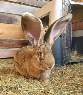 Cockie (links) und Snickers (mitte) sind zwei junge Deutsche Riesen Kaninchen, Twix und Nutella (rechts) sind zwei Riesenschecken-Kaninchen. Die vier befinden sich aktuell (Stand Juni 2025) in der Kennenlernphase. Wenn alles klappt, bekommen wir dieses Jahr noch Großkaninchenbabies.